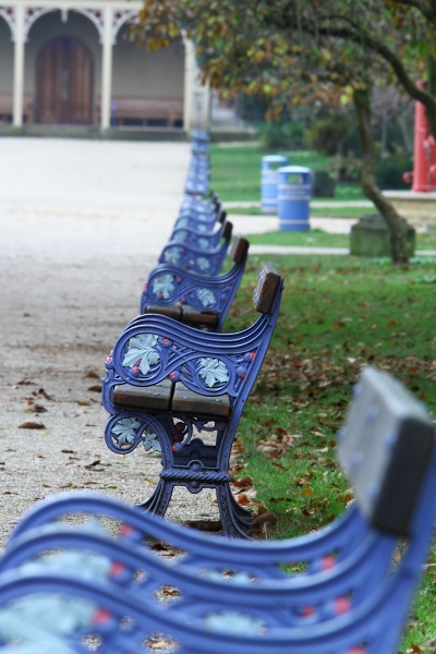 The colours used on the benches and bins in Roberts Park are based on the colours in the tiles found in the Half Moon Cafe.