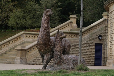 Titus Salt owes much of his success to the fact that he and his experts developed the methods needed for processing Alpaca wool. Hence the Alpaca Bronzes installed in front of the Half Moon Cafe and the etched window at the rear of the part of Salts Mill facing Victoria Road.