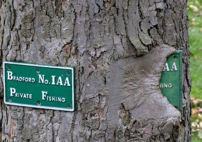 In 1878 Bradford No1 Angling Association was founded to provide fishing for local anglers. According to their website, it is one of the oldest and largest angling clubs in the country. They have many Private Fishing signs around and one interesting one is by the weir on the River Aire in Roberts Park.