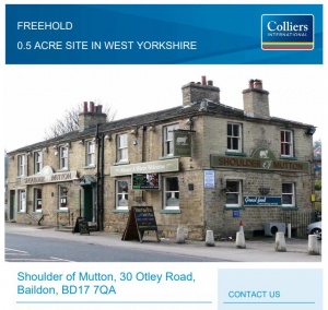 In 2010 the property as Shoulder of Mutton was for sale by Colliers International, Park Row, Leeds. Guide price £300,000